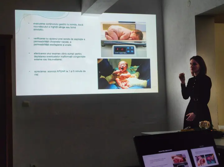 Our friend and colleague, Dr. Delia-Iuliana Mogan, a specialist in neonatology, captivated us with her presentation about the fascinating world of neonatology. She emphasized how wonderful yet challenging this field can be. A neonatologist plays a crucial role, acting as a link between the fields of gynecology, the delivery room, and the pediatrician who will monitor the patient's progress in the first 28 days of their life.