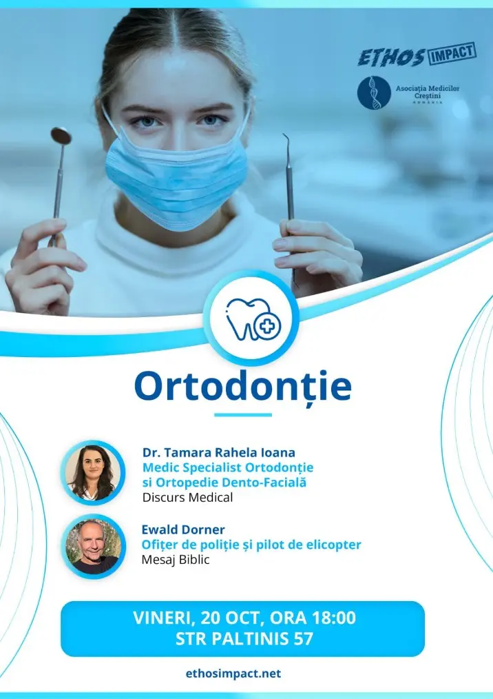 We warmly invite you to a special event that combines the medical field with Christian teachings. We will have the honor of hosting a specialist in orthodontics, Dr. Tamara Rahela Ioana, who will share from her rich experience in the field of orthodontics. We will explore the latest innovations and perspectives in this fascinating field.